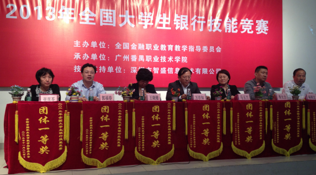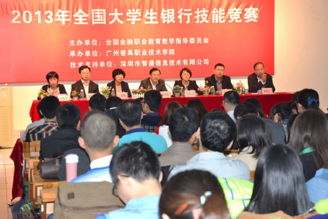 2013年11月24日,由全國(guó)金融職業(yè)教育教學(xué)指導(dǎo)委員會(huì)主辦、廣州番禺職業(yè)技術(shù)學(xué)院承辦、深圳智盛信息技術(shù)股份有限公司支持的“2013年全國(guó)大學(xué)生銀行技能競(jìng)賽”在廣州番禺職業(yè)技術(shù)學(xué)院舉行。中國(guó)人民銀行中國(guó)金融培訓(xùn)中心主任、全國(guó)金融行業(yè)指導(dǎo)委員會(huì)常務(wù)副主任委員萬(wàn)存知,中國(guó)人民銀行中國(guó)金融培訓(xùn)中心副主任、全國(guó)金融行指委常務(wù)秘書長(zhǎng)馬玉蘭,廣州番禺職業(yè)技術(shù)學(xué)院副校長(zhǎng)王曉敏,智盛公司總經(jīng)理彭家源等領(lǐng)導(dǎo)蒞臨比賽現(xiàn)場(chǎng)。來(lái)自全國(guó)84所高職院校的252名選手和領(lǐng)隊(duì)、指導(dǎo)老師以及相關(guān)單位和觀摩單位代表共700余人參加活動(dòng)。