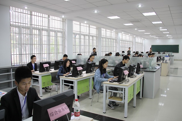 4月12日,2014年安徽省職業(yè)院校技能大賽(高職組)銀行綜合業(yè)務競賽項目在安徽財貿職業(yè)學院舉行,本次比賽共有省內15所高職院校代表隊參賽,通過銀行綜合業(yè)務技能和點鈔、傳票算、字符輸入等銀行單項業(yè)務技能兩個環(huán)節(jié)的比拼計算團體總分。在激烈角逐中,安徽財貿職業(yè)學院選手充分發(fā)揮了經過前期嚴格選拔、精心訓練積累的技能水平和心態(tài)優(yōu)勢,認真作答,沉著應戰(zhàn),不負眾望取得了喜人的成績。