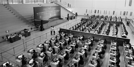早上7點30分,所有參賽選手身著統(tǒng)一參賽服裝,整齊有序地在廣發(fā)文體中心進行檢錄、抽簽、加密,在執(zhí)委會工作人員的監(jiān)督下,各校參賽選手有序檢錄,抽取賽位,在裁判員和志愿者的帶領(lǐng)下入場。