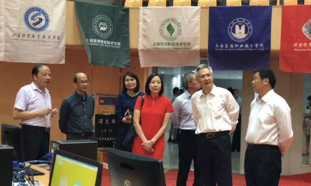 隨后廣州番禺職業(yè)技術(shù)學(xué)院校長(zhǎng)何友義、財(cái)經(jīng)學(xué)院楊則文院長(zhǎng)及各陪同視察的領(lǐng)導(dǎo)前往賽場(chǎng)視察工作。期間新加坡南洋理工學(xué)院校長(zhǎng)一行也到現(xiàn)場(chǎng)進(jìn)行參觀,并贊嘆道:“目前世界技能大賽還沒有的項(xiàng)目,你們已經(jīng)在全國(guó)開始舉辦了,太厲害了!”