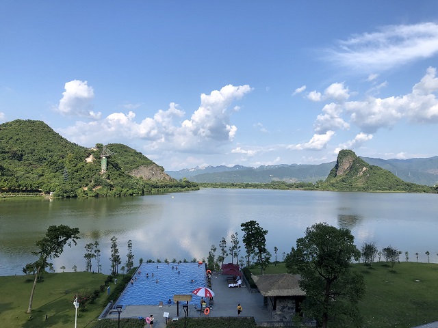 晚上我們?nèi)胱×嗽O(shè)施豪華,坐擁壯麗山景,依傍恬靜湖水,交相輝映,讓您沉浸于質(zhì)樸而浪漫的世外桃源的寶晶宮天鵝湖度假酒店。
