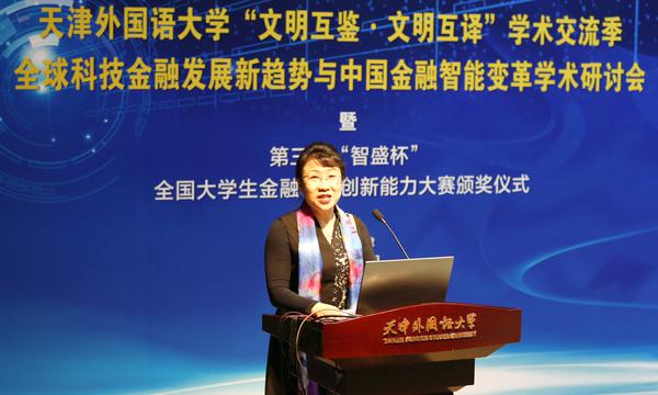 張莉主任致辭中高度評價了本次大賽在提升學生金融創(chuàng)新能力方面起到的作用,對天津外國語大學和深圳智盛信息技術(shù)股份有限公司為這次大賽的有序組織和技術(shù)保障,給予了高度肯定。