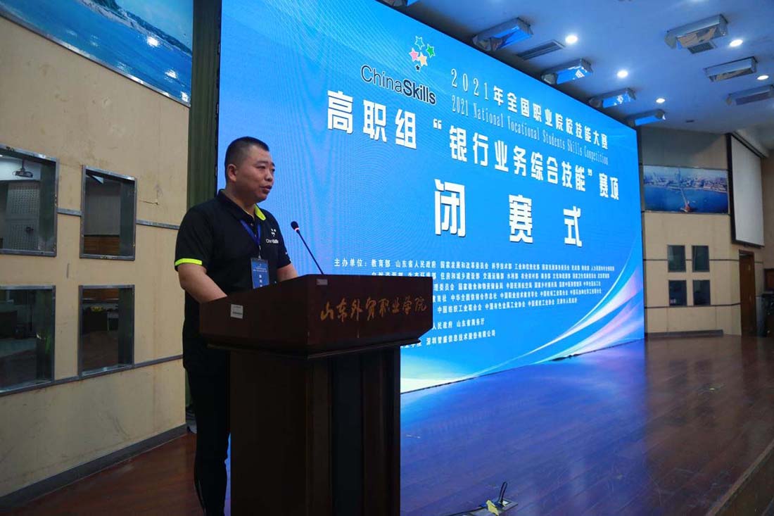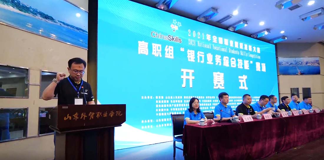 6月10日-11日,由教育部、山東省人民政府等36個(gè)部委、省級(jí)人民政府主辦,山東省教育廳、青島市人民政府、山東省商務(wù)廳承辦,山東外貿(mào)職業(yè)學(xué)院與我司協(xié)辦的2021年全國(guó)職業(yè)院校技能大賽高職組“銀行業(yè)務(wù)綜合技能”賽項(xiàng)圓滿落下帷幕。來自全國(guó)28省、直轄市、自治區(qū)(不含港澳臺(tái))的28支隊(duì)伍114名選手同臺(tái)競(jìng)技。