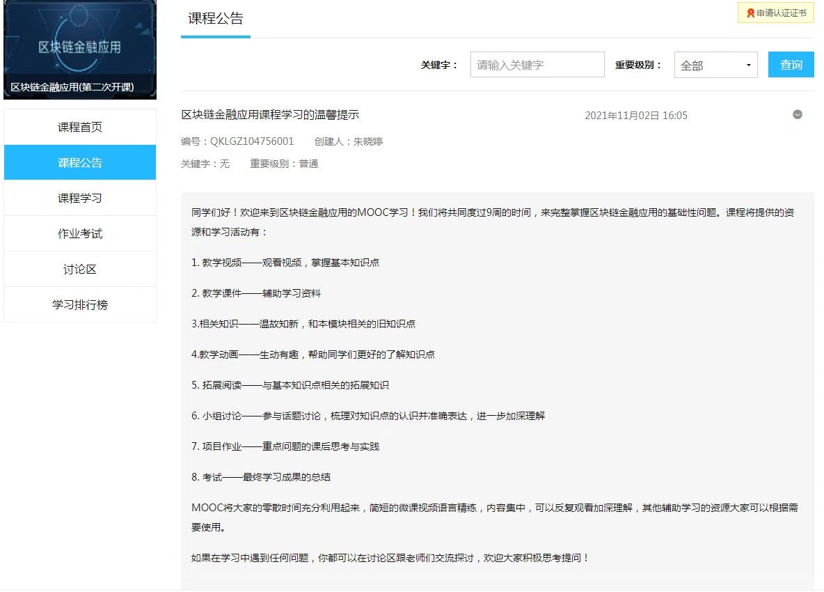 為落實(shí)中央部署,教育部于2020年4月30日發(fā)布《高等學(xué)校區(qū)塊鏈技術(shù)創(chuàng)新行動(dòng)計(jì)劃》(以下簡稱《行動(dòng)計(jì)劃》),文件要求“到2025年,在高校布局建設(shè)一批區(qū)塊鏈技術(shù)創(chuàng)新基地,培養(yǎng)匯聚一批區(qū)塊鏈技術(shù)攻關(guān)團(tuán)隊(duì),基本形成全面推進(jìn)、重點(diǎn)布局、特色發(fā)展的總體格局和高水平創(chuàng)新人才不斷涌現(xiàn)。高質(zhì)量科技成果持續(xù)產(chǎn)生的良好態(tài)勢,推動(dòng)若干高校成為我國區(qū)塊鏈技術(shù)創(chuàng)新的重要陣地,一大批高校區(qū)塊鏈技術(shù)成果為產(chǎn)業(yè)發(fā)展提供動(dòng)能,有力支撐我國區(qū)塊鏈技術(shù)的發(fā)展、應(yīng)用和管理。文件同時(shí)提出“針對區(qū)塊鏈在金融服務(wù)領(lǐng)域應(yīng)用的需求和問題,建設(shè)基于區(qū)塊鏈的金融服務(wù)技術(shù)與應(yīng)用創(chuàng)新平臺,支撐開展區(qū)塊鏈在數(shù)字貨幣、跨境支付/結(jié)算、供應(yīng)鏈金融、資產(chǎn)證券化等金融業(yè)務(wù)的創(chuàng)新應(yīng)用研究;支撐開展面向金融監(jiān)管領(lǐng)域需求的區(qū)塊鏈關(guān)鍵技術(shù)應(yīng)用研究,提升我國防范和化解金融風(fēng)險(xiǎn)的能力,助力國家金融安全,提升我國的金融科技創(chuàng)新能力和應(yīng)用水平,推動(dòng)我國數(shù)字金融發(fā)展和人民幣國際化",這一系列講話和文件明確了學(xué)校開展區(qū)塊鏈技術(shù)應(yīng)用研究和開設(shè)區(qū)塊鏈技術(shù)課程的重要性和必要性,為區(qū)塊鏈金融應(yīng)用進(jìn)入課堂提供了強(qiáng)大的政策推動(dòng)力。