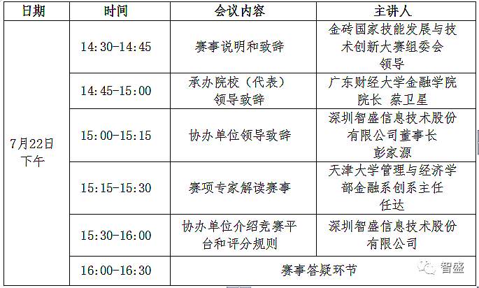 2022一帶一路暨金磚國家技能發(fā)展與技術(shù)創(chuàng)新大賽之金融科技創(chuàng)新應用能力賽項計劃于2022年10月份舉辦(因疫情原因,比賽采用線上遠程的方式)。為提升辦賽水平與辦賽質(zhì)量、推進各項籌備工作、方便各參賽隊及時了解比賽相關(guān)信息,定于 7月 22 日下午舉辦本次比賽的線上技術(shù)說明會?,F(xiàn)將有關(guān)事宜通知如下: