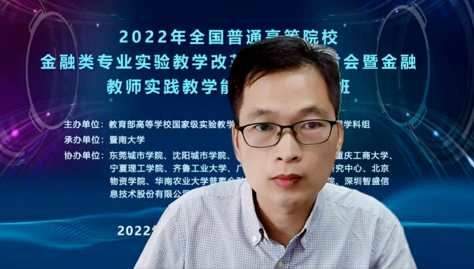 教育部高等學(xué)校國(guó)家級(jí)實(shí)驗(yàn)教學(xué)示范中心聯(lián)席會(huì)經(jīng)管學(xué)科組秘書(shū)長(zhǎng)周紅剛作“金融學(xué)科實(shí)驗(yàn)教學(xué)與一流課程建設(shè)”的主題報(bào)告、暨南大學(xué)南方高等金融研究院(SCIF)副院長(zhǎng)沈軍作“數(shù)字貨幣、美元體系邏輯與國(guó)際金融權(quán)力重構(gòu)”主題分享、廣東金融學(xué)院互聯(lián)網(wǎng)金融研究中心主任藍(lán)美靜作“金融科技類課程建設(shè):理論與實(shí)驗(yàn)的結(jié)合、金融科技類課程建設(shè):線上線下混合式教學(xué)框架搭建”主題分享、東莞城市學(xué)院數(shù)字經(jīng)濟(jì)學(xué)院名譽(yù)院長(zhǎng)賴忠孝作“金融人才培養(yǎng)規(guī)格的探索”主題分享、齊魯工業(yè)大學(xué)經(jīng)管學(xué)部金融科技系主任張路作“產(chǎn)教融合協(xié)同育人背景下金融科技人才培養(yǎng)模式的探索與實(shí)踐”主題分享、廣東金融學(xué)院金融與投資學(xué)院實(shí)驗(yàn)室主任王梅作“商業(yè)銀行課程教學(xué)及實(shí)驗(yàn)體系建設(shè)”主題分享、天津財(cái)經(jīng)大學(xué)金融學(xué)院教學(xué)實(shí)驗(yàn)中心主任李兆軍作“區(qū)塊鏈金融實(shí)訓(xùn)教學(xué)經(jīng)驗(yàn)分享”主題分享、寧夏理工學(xué)院經(jīng)濟(jì)管理學(xué)院金融學(xué)專業(yè)負(fù)責(zé)人王茹作“應(yīng)用型高校金融實(shí)驗(yàn)室建設(shè)及應(yīng)用”主題分享、重慶工商大學(xué)金融學(xué)院(重慶金融學(xué)院)金融學(xué)系主任王偉作“綠色金融在商業(yè)銀行的應(yīng)用”主題分享、北京物資學(xué)院金融學(xué)專業(yè)負(fù)責(zé)人王寶森作“完善金融科技課程體系,提高金融科技師資理論與實(shí)際結(jié)合能力”主題分享、沈陽(yáng)城市學(xué)院金融學(xué)系主任蔡苗苗作“金融科技創(chuàng)新背景下提升金融教學(xué)能力的有效途徑”主題分享。