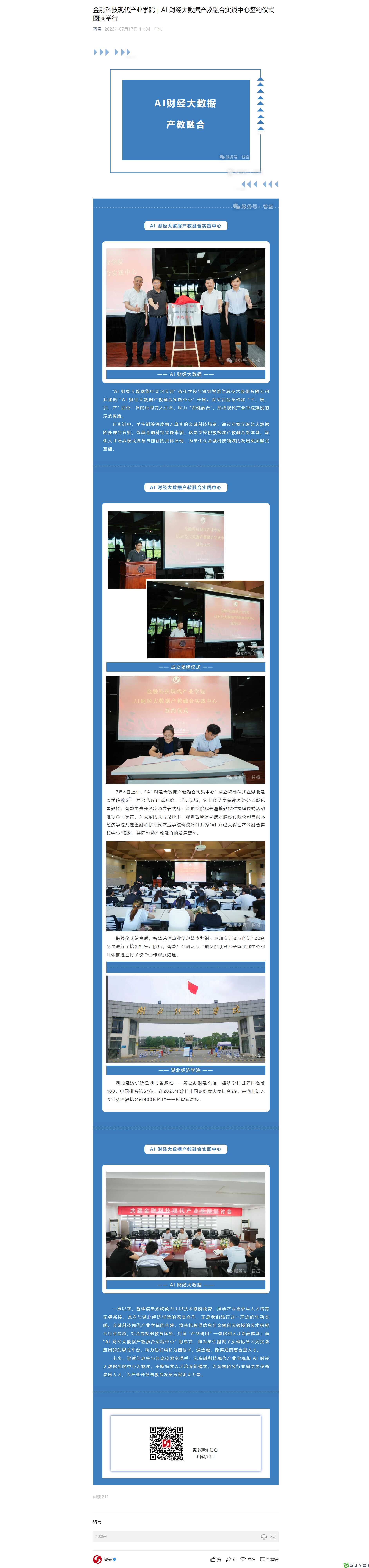金融科技現(xiàn)代產(chǎn)業(yè)學院|AI 財經(jīng)大數(shù)據(jù)產(chǎn)教融合實踐中心簽約儀式圓滿舉行